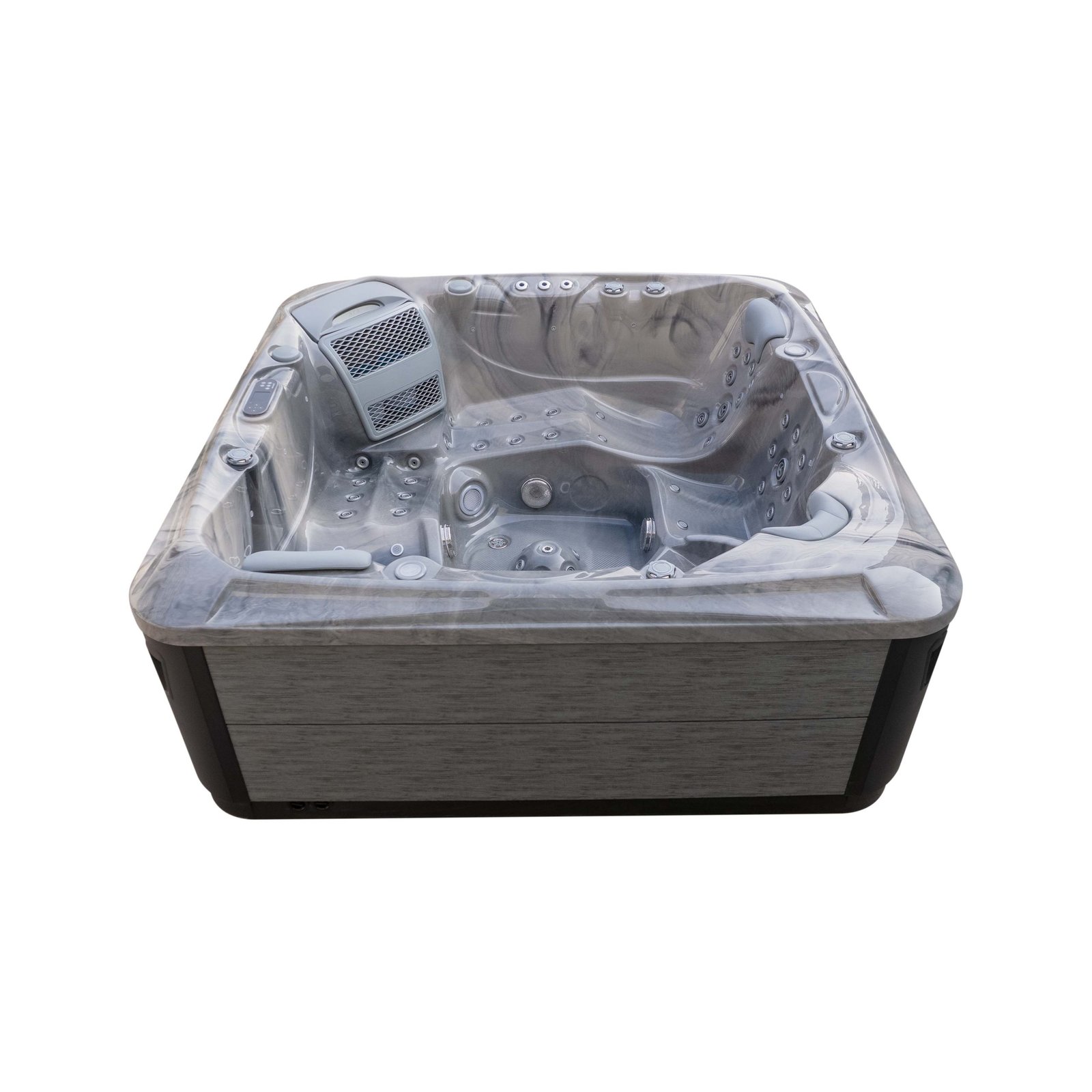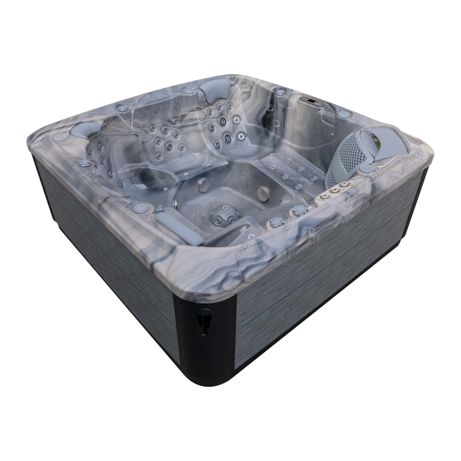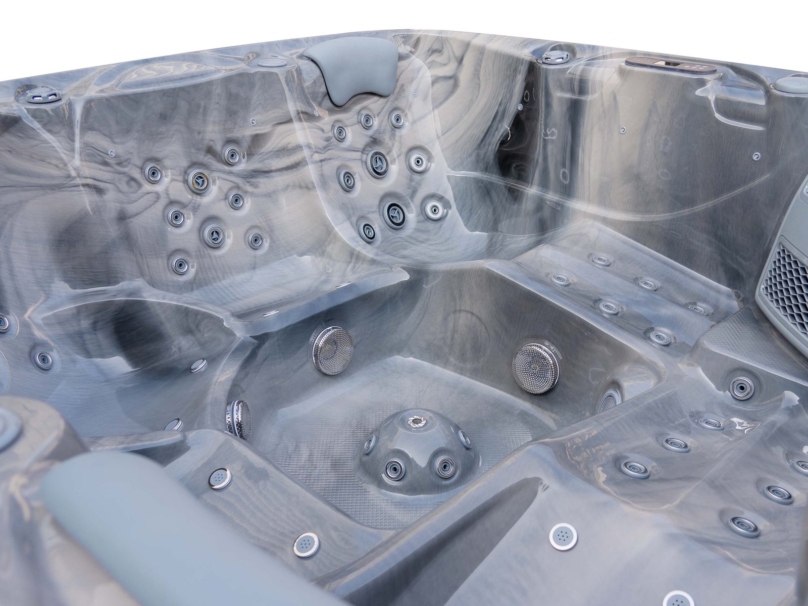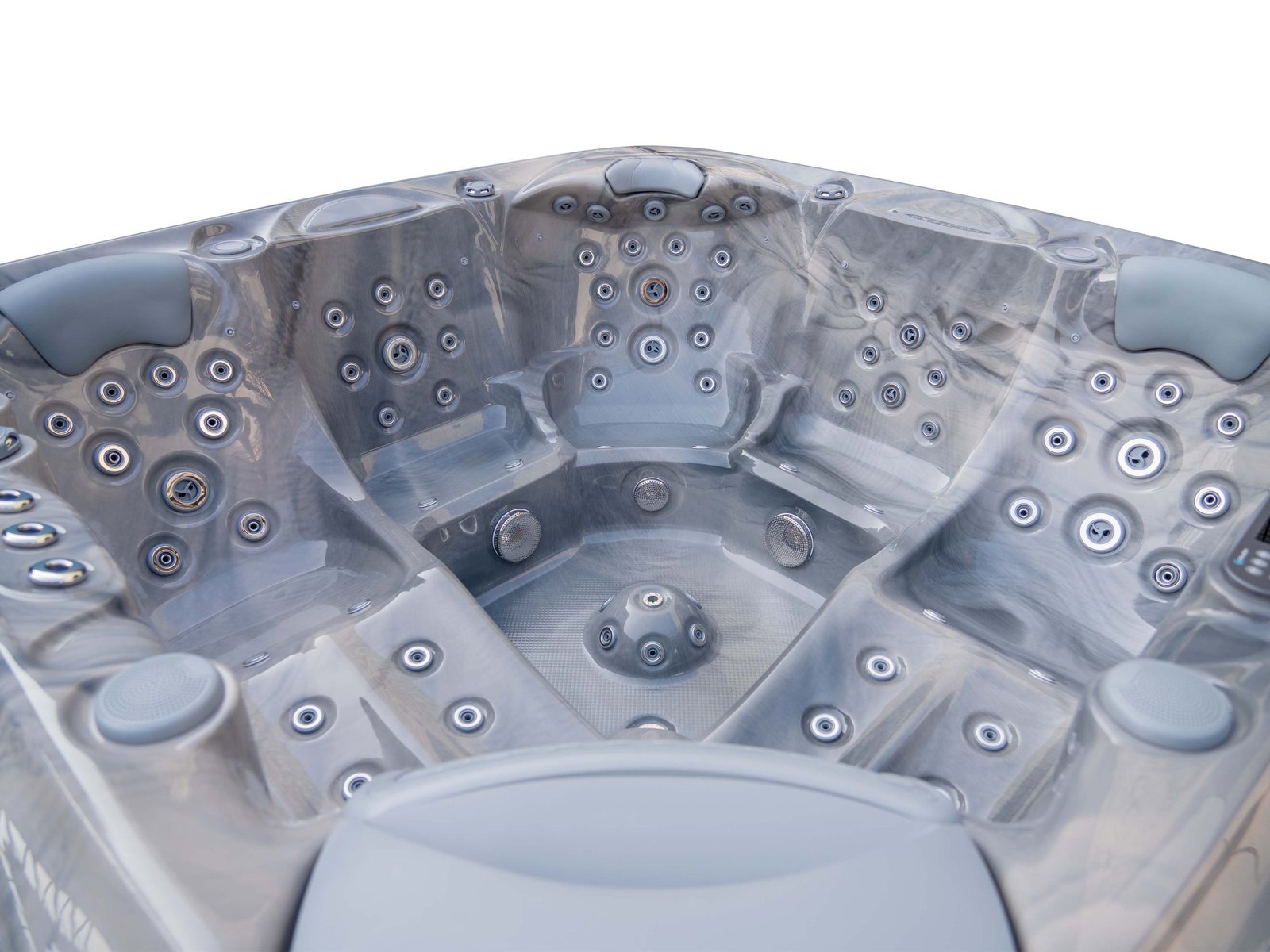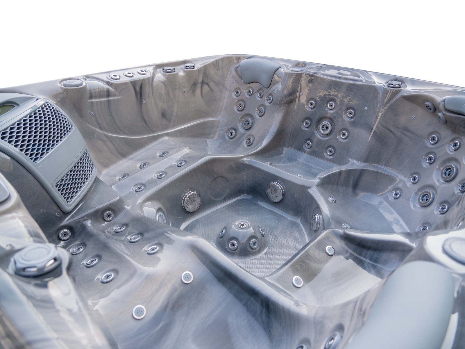 The Elysium Lifestyle+ is designed for people who take relaxation seriously — deeper seats, sculpted lounger positions, and a premium hydromassage system that genuinely helps the body unwind. With two full loungers and three additional seats, there is always space to stretch out properly, whether you’re unwinding alone, sharing time with a partner, or hosting friends.
