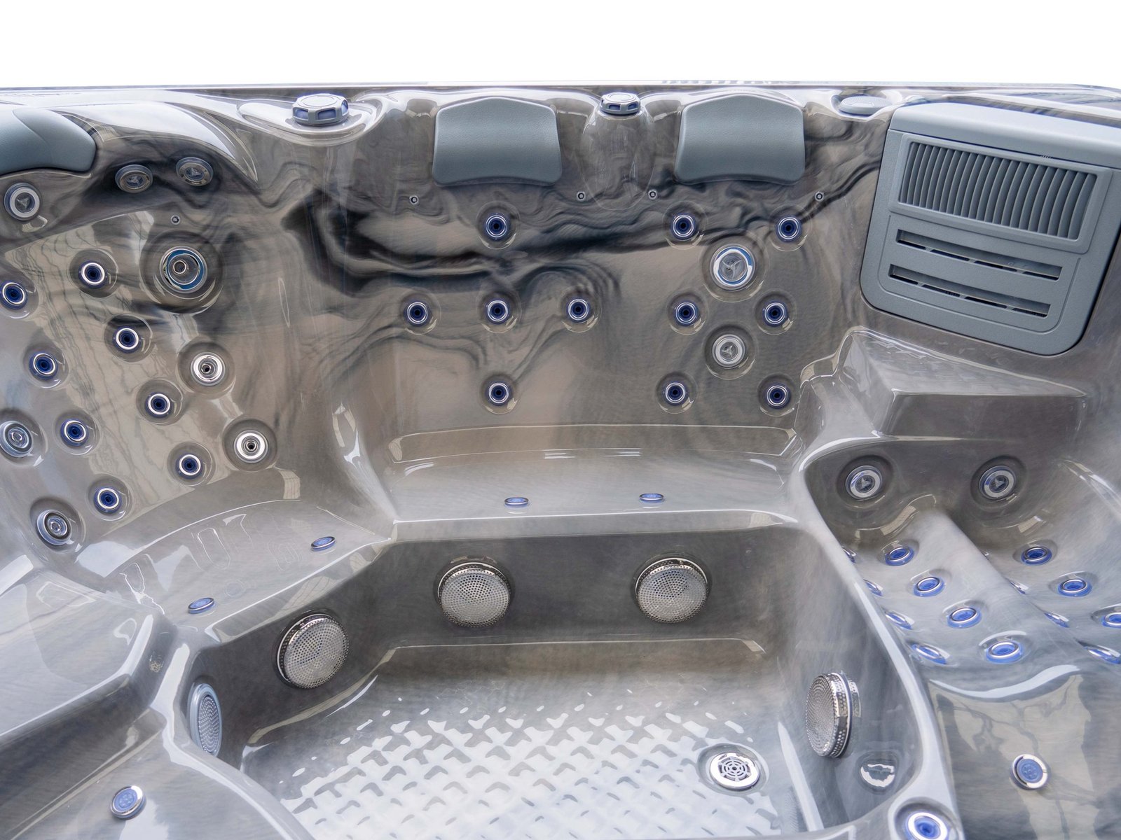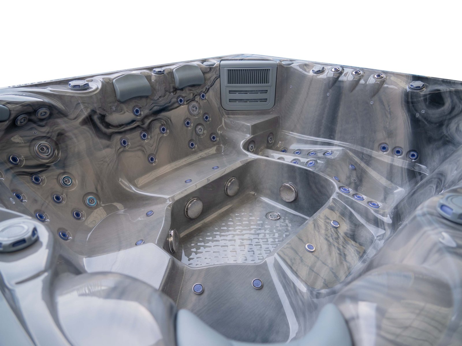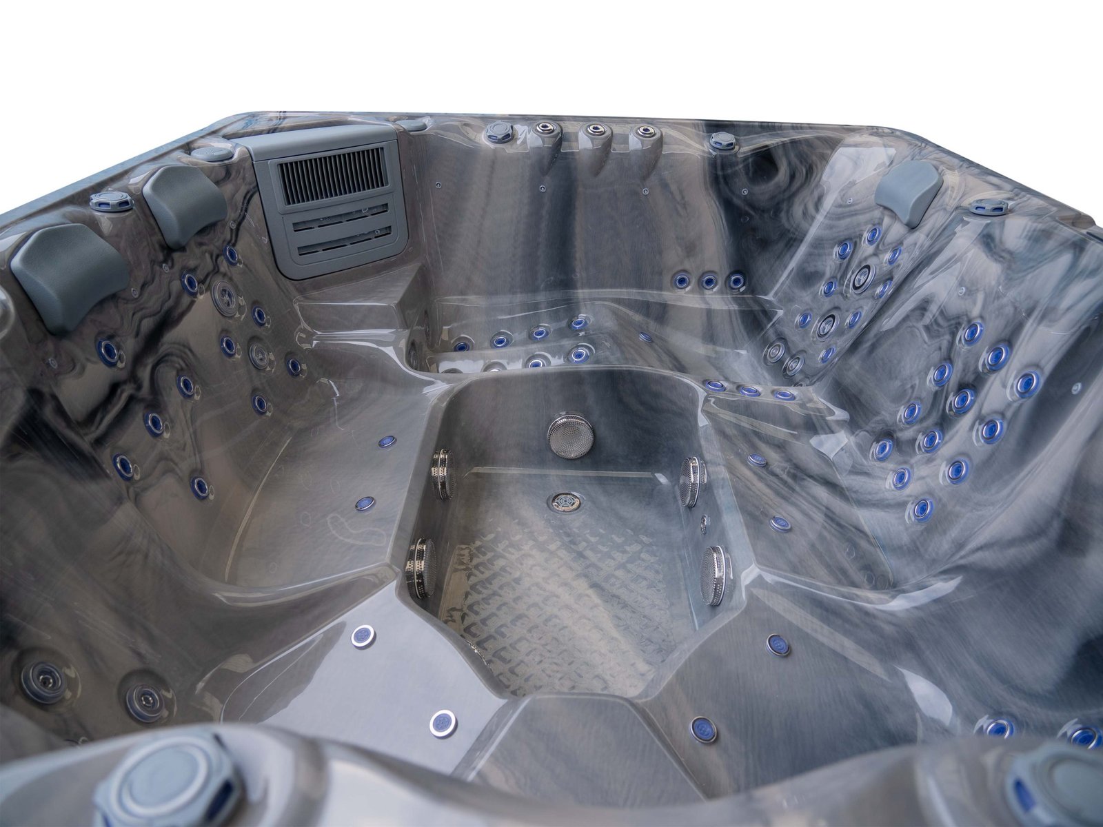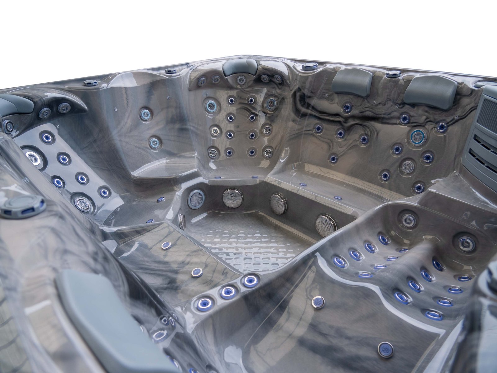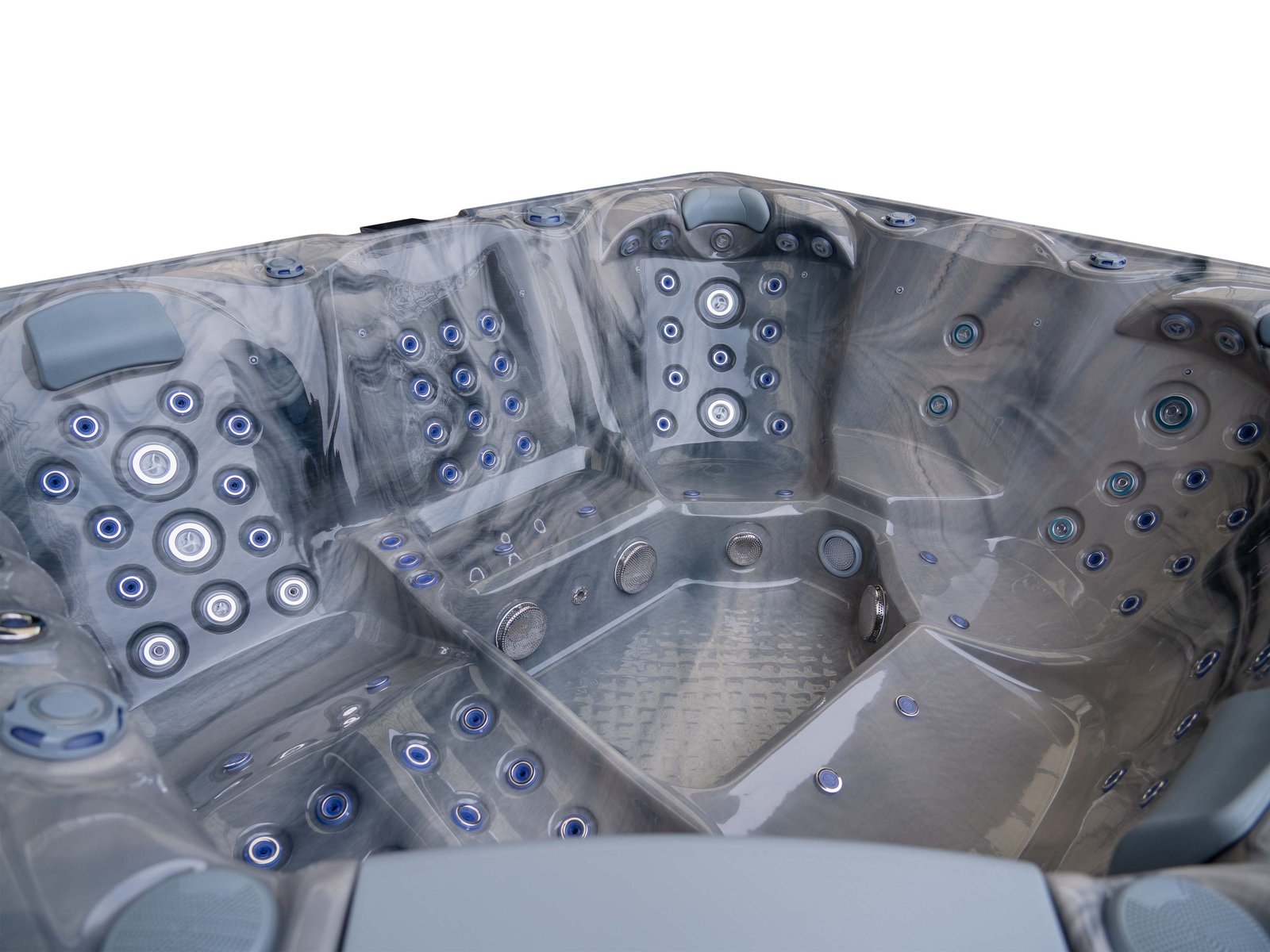 The lounger seat offers a full-body massage experience, allowing you to recline comfortably while enjoying targeted hydrotherapy from head to toe. Surrounding seating provides equal comfort and jet coverage, ensuring every position in the spa feels purposeful rather than secondary.