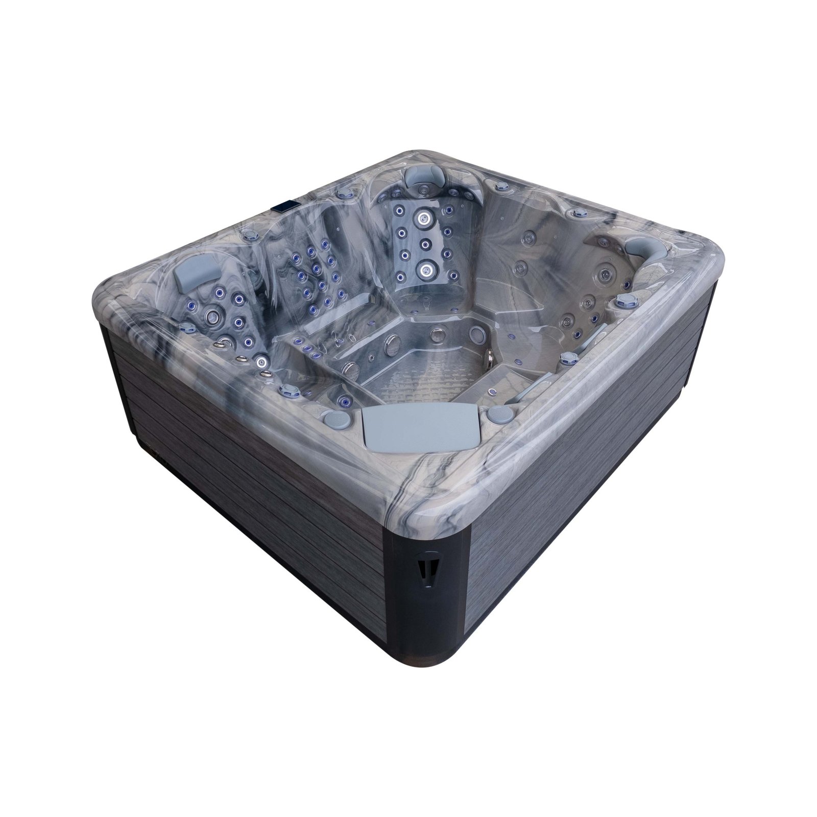 Control is handled by a premium Balboa system with SpaTouch 4 control panel, providing intuitive access to temperature, jets, lighting and system settings. Triple high-power pumps, combined with an energy-saving circulation pump and dedicated air pump, ensure consistent performance even when all seats are in use.
