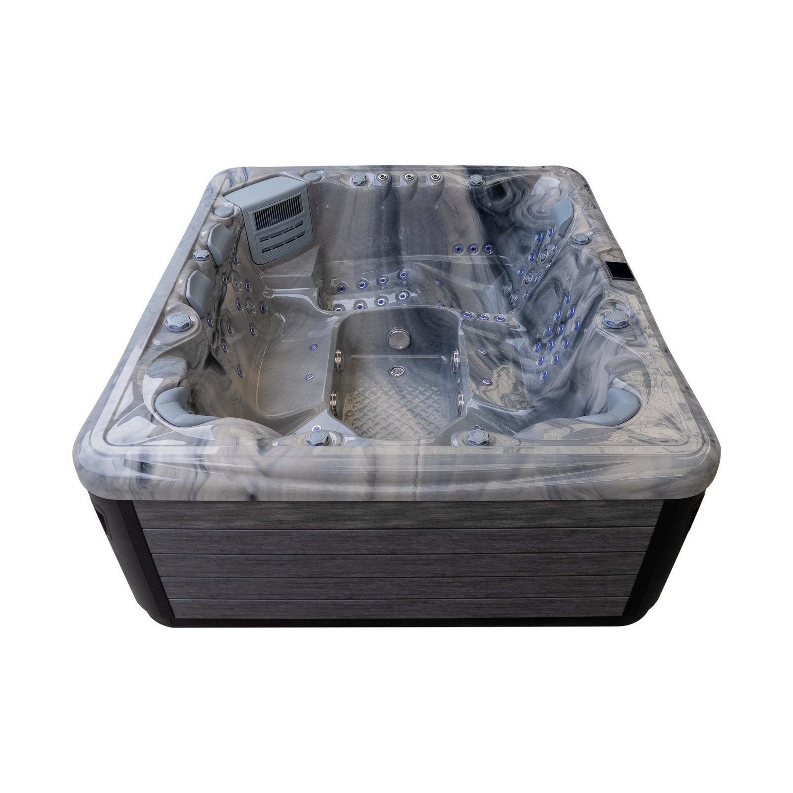 At the heart of the Monaco is a powerful hydrotherapy system featuring an impressive 99 light-up jets. These are carefully positioned to target the back, shoulders, hips and legs, delivering a balanced massage experience across every seat. Dedicated neck and shoulder jets add focused upper-body relief, while multiple jet sizes ensure variation in pressure and coverage throughout the spa.