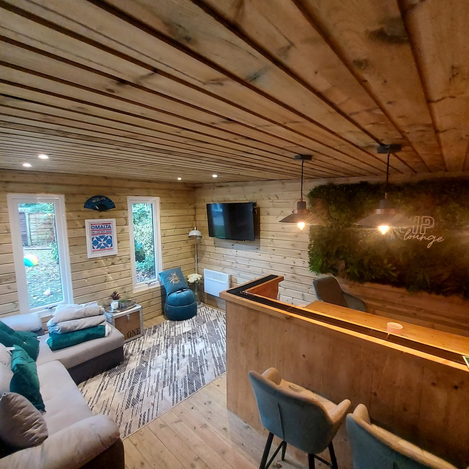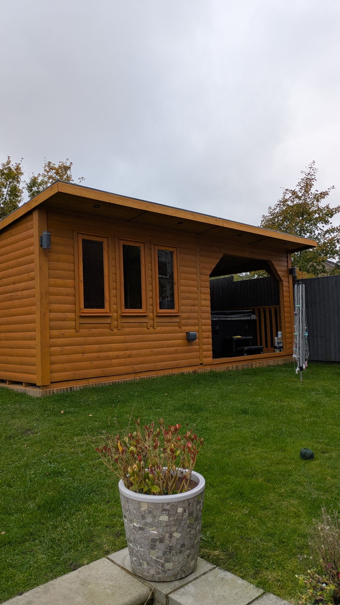 With a standard size of 20ft x 10ft (approximately 6.1m x 3.0m), the layout strikes the perfect balance between enclosed comfort and open social space. Every detail has been carefully considered to allow seamless movement between the hot tub and the covered entertaining area, making it just as suited to quiet evenings as it is to hosting friends on match day.