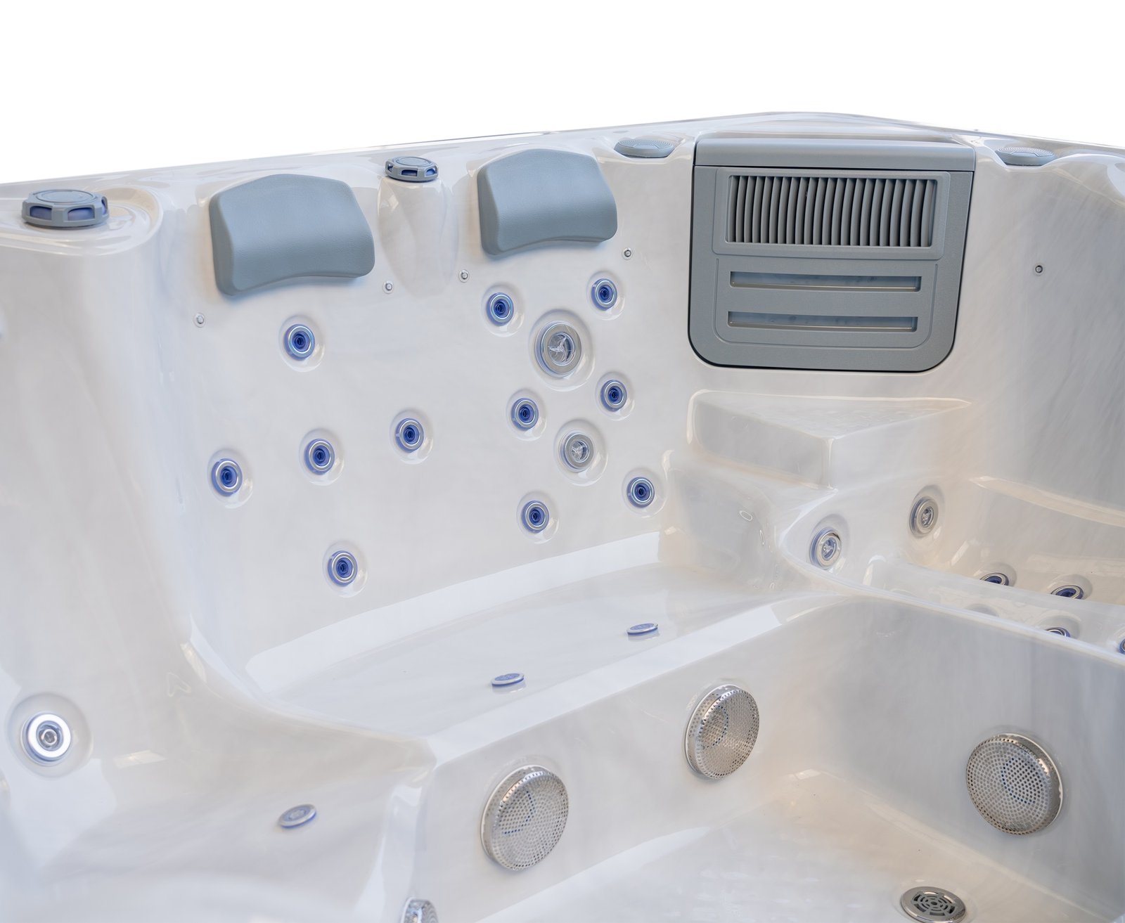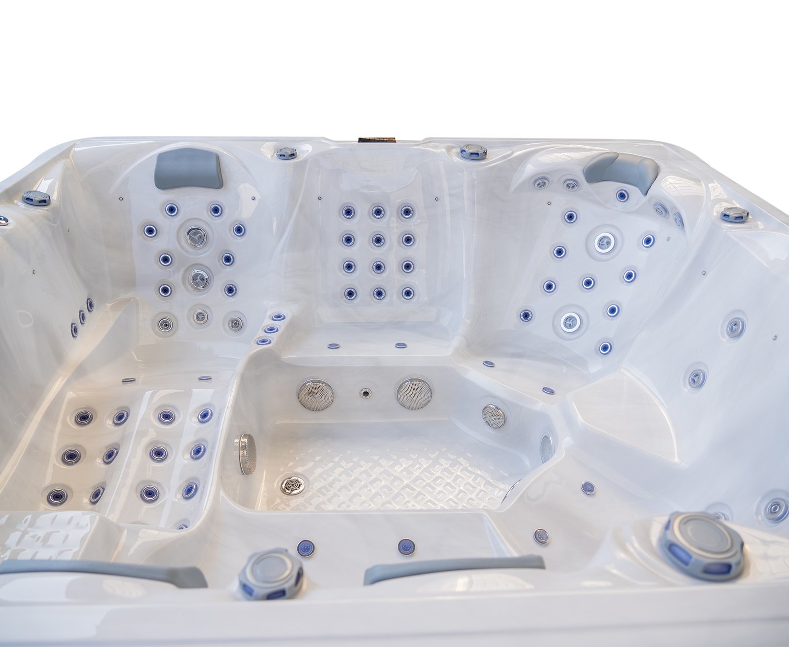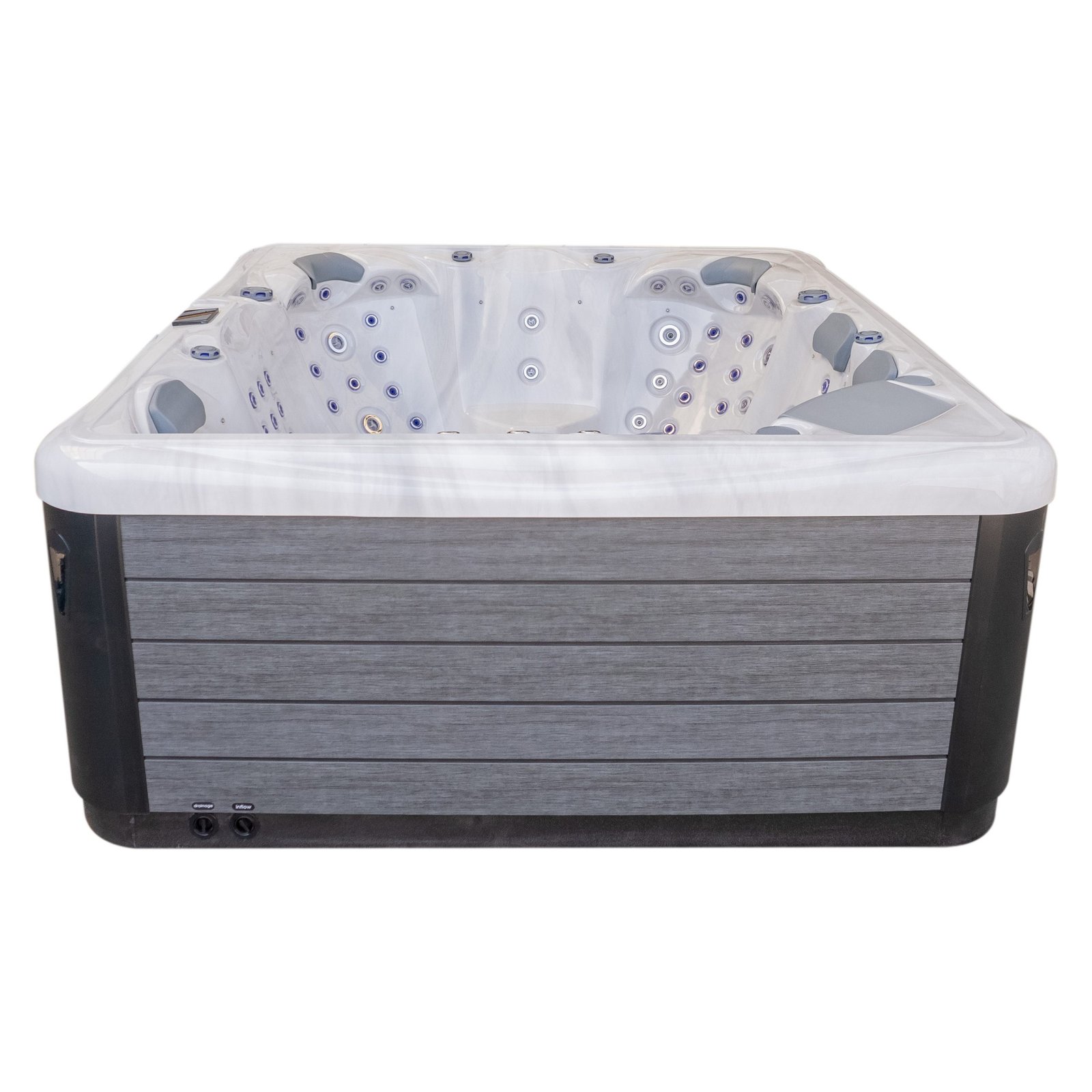 The lounger seat offers a full-body massage experience, allowing you to recline comfortably while enjoying targeted hydrotherapy from head to toe. Surrounding seating provides equal comfort and jet coverage, ensuring every position in the spa feels purposeful rather than secondary.