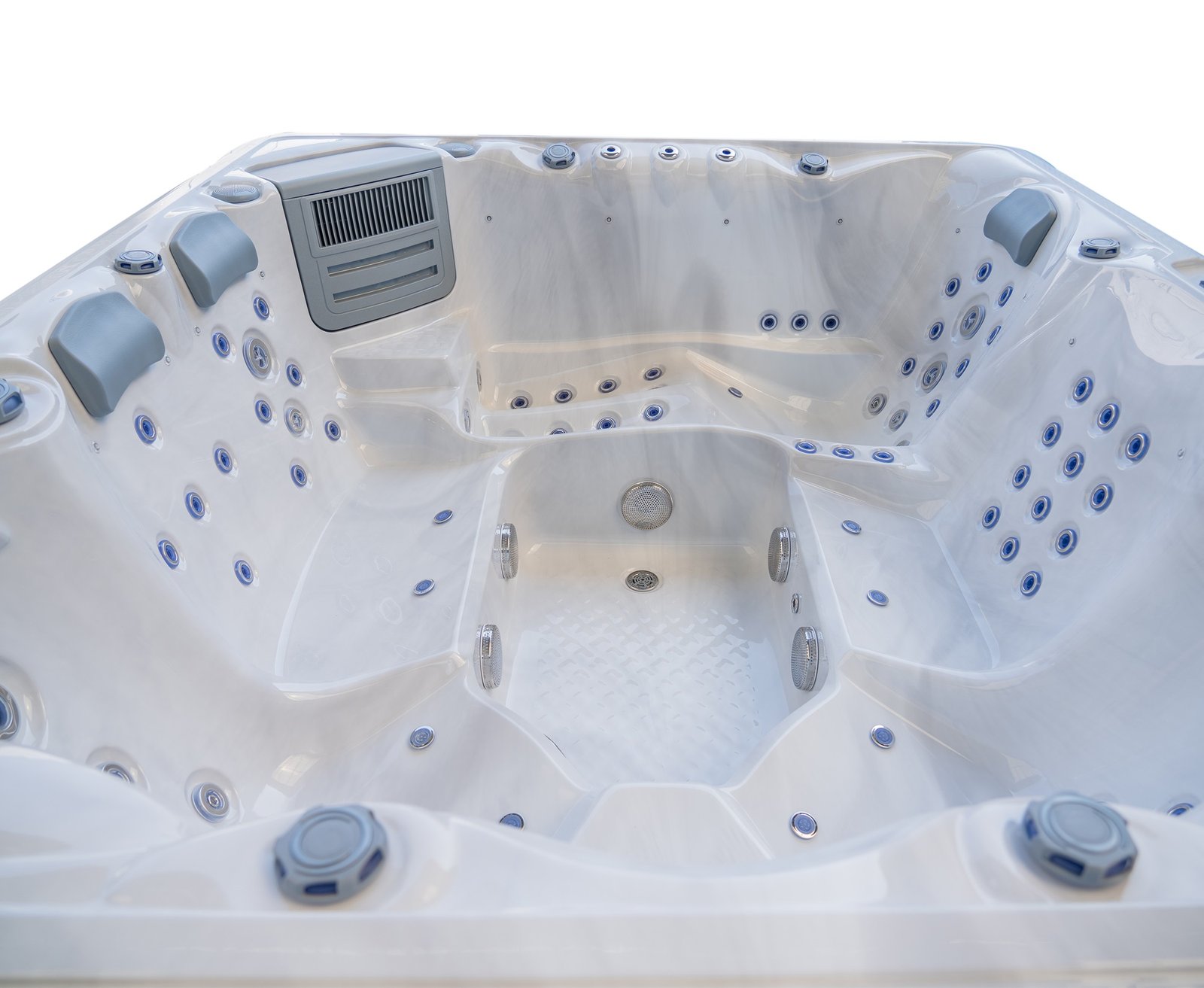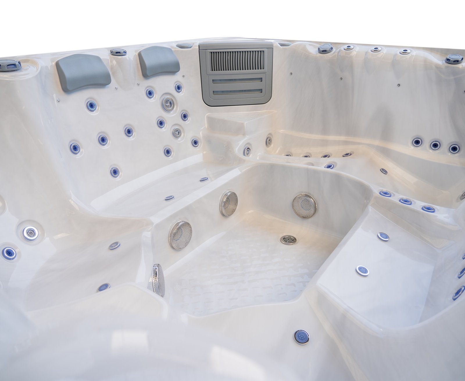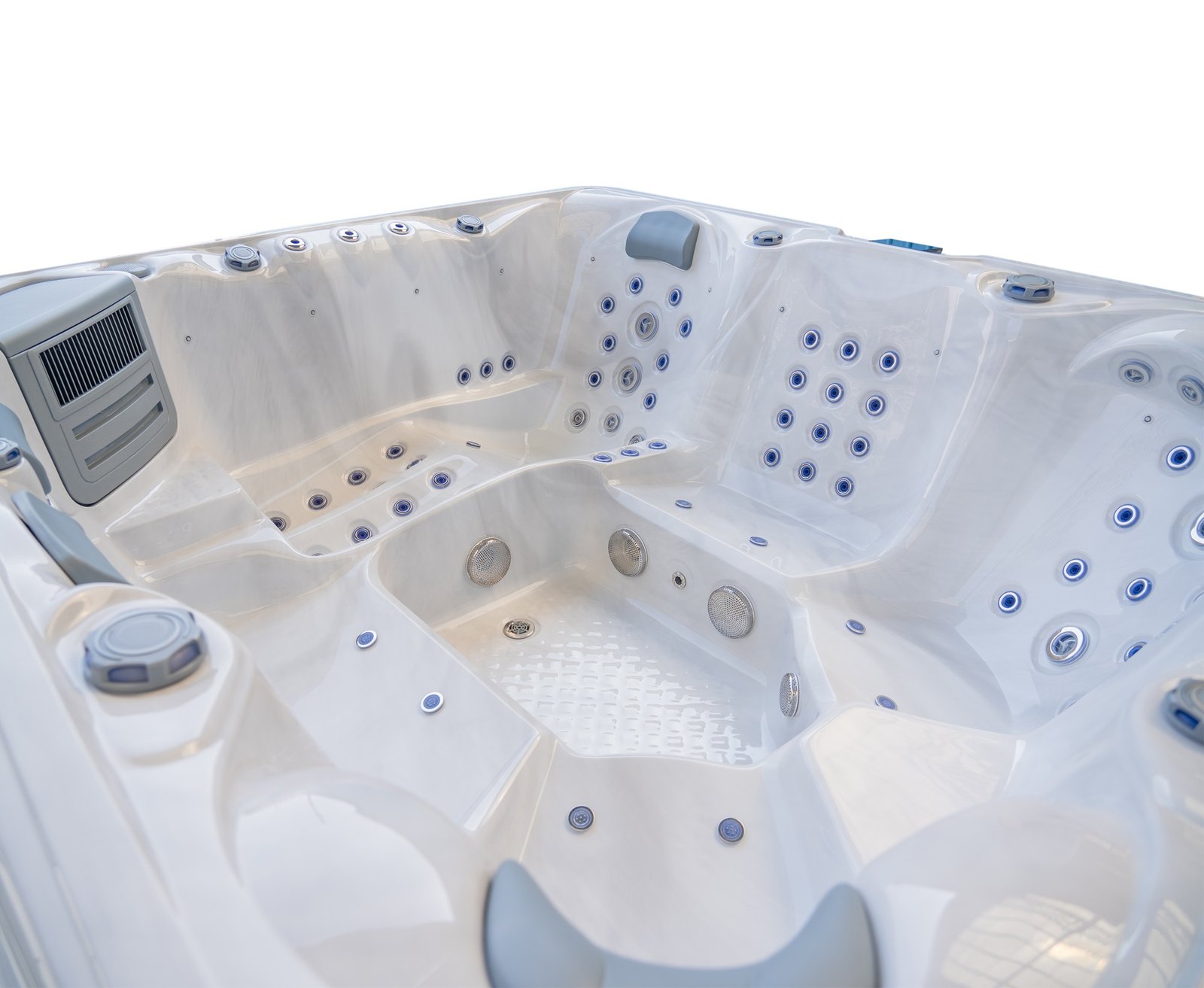 The lounger seat offers a full-body massage experience, allowing you to recline comfortably while enjoying targeted hydrotherapy from head to toe. Surrounding seating provides equal comfort and jet coverage, ensuring every position in the spa feels purposeful rather than secondary.