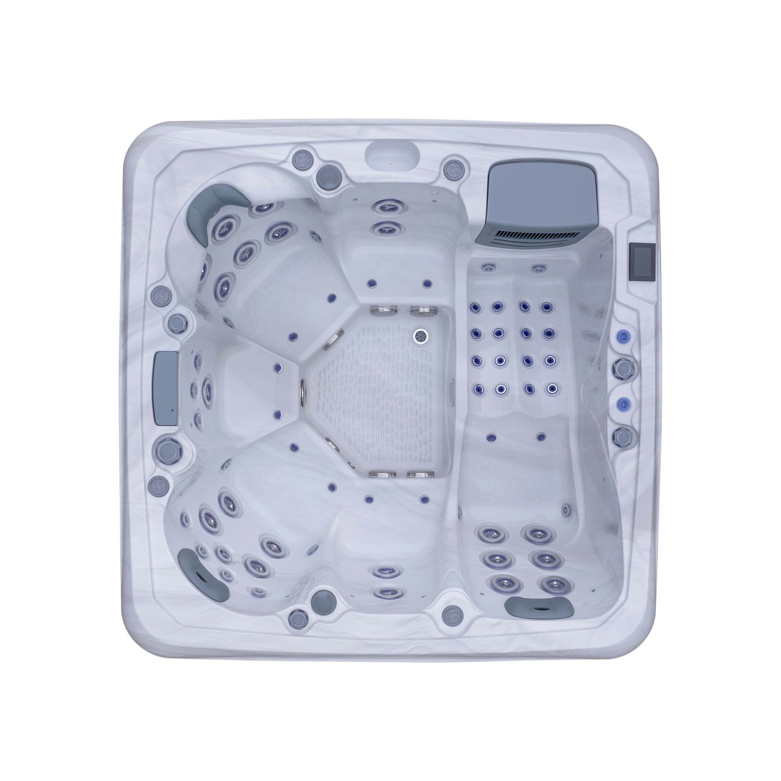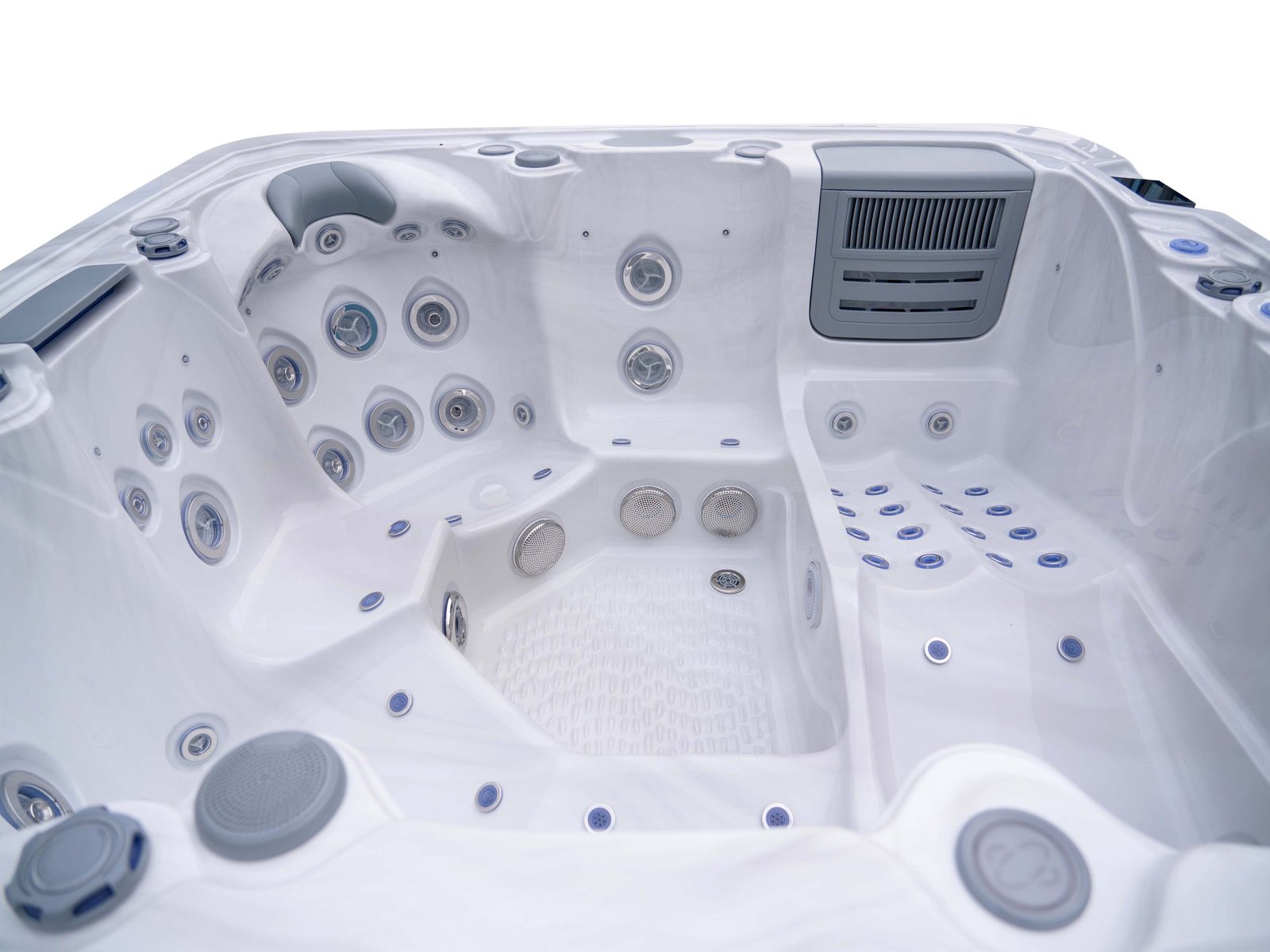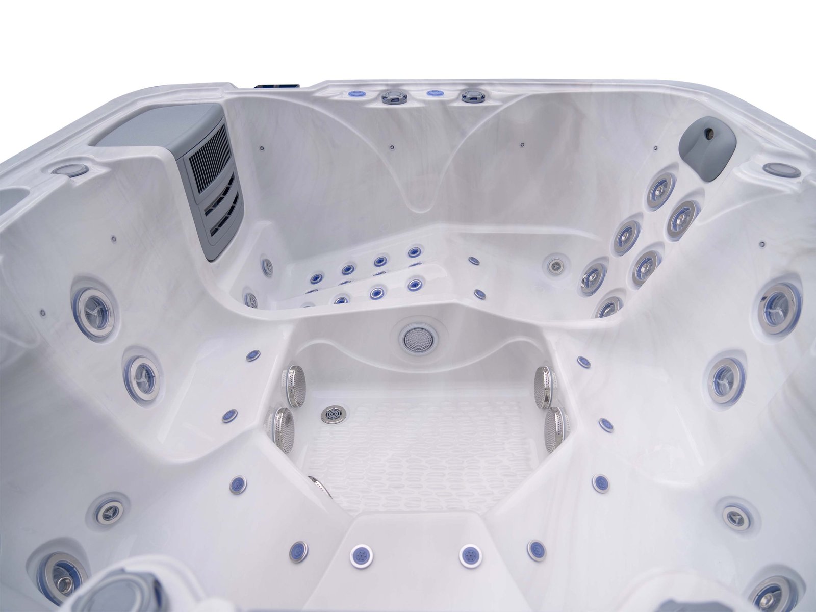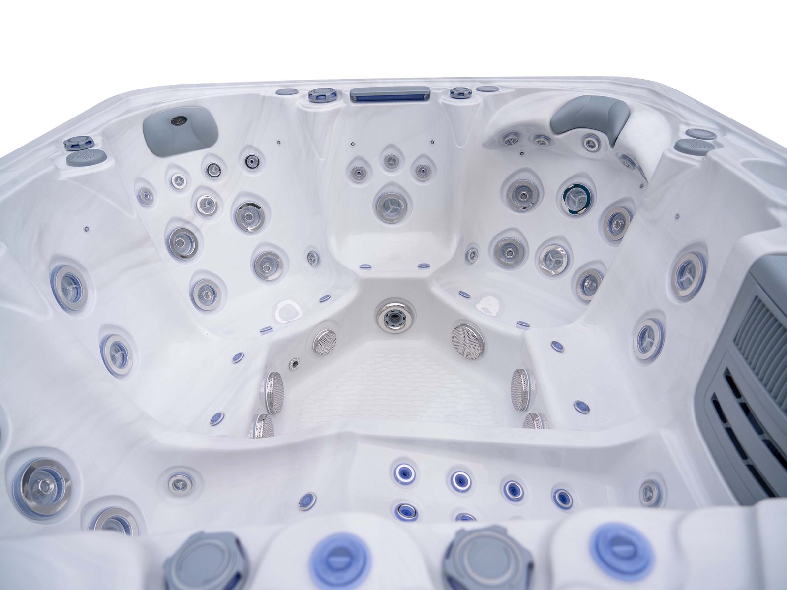 59-jet system designed for controlled, meaningful hydrotherapy intensity.