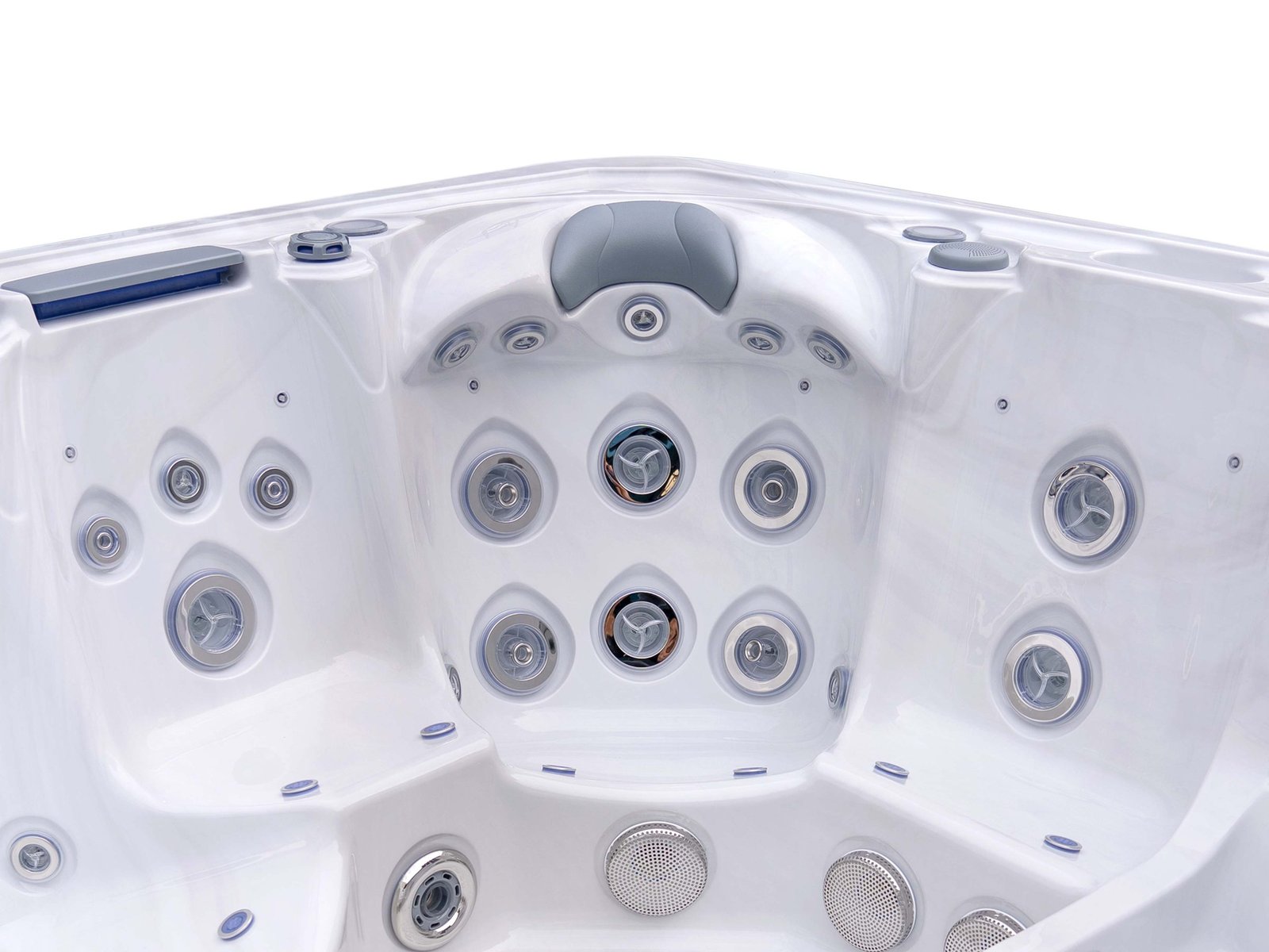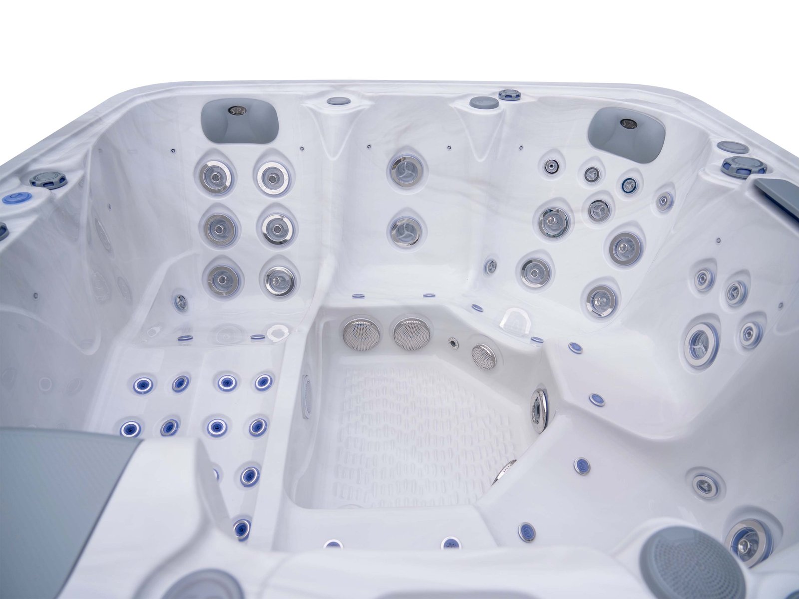 Three-pump configuration for stronger and more consistent hydromassage delivery.
